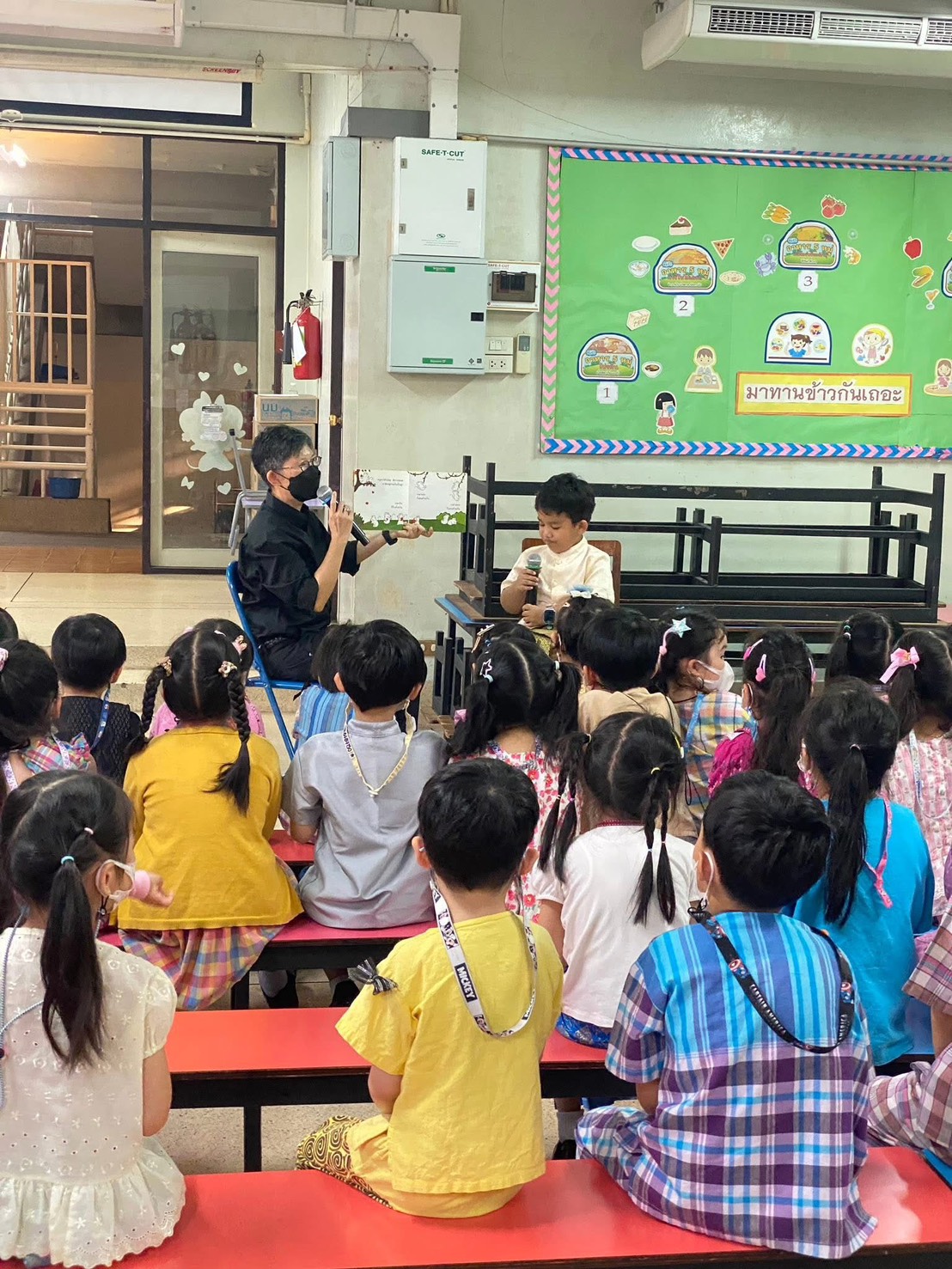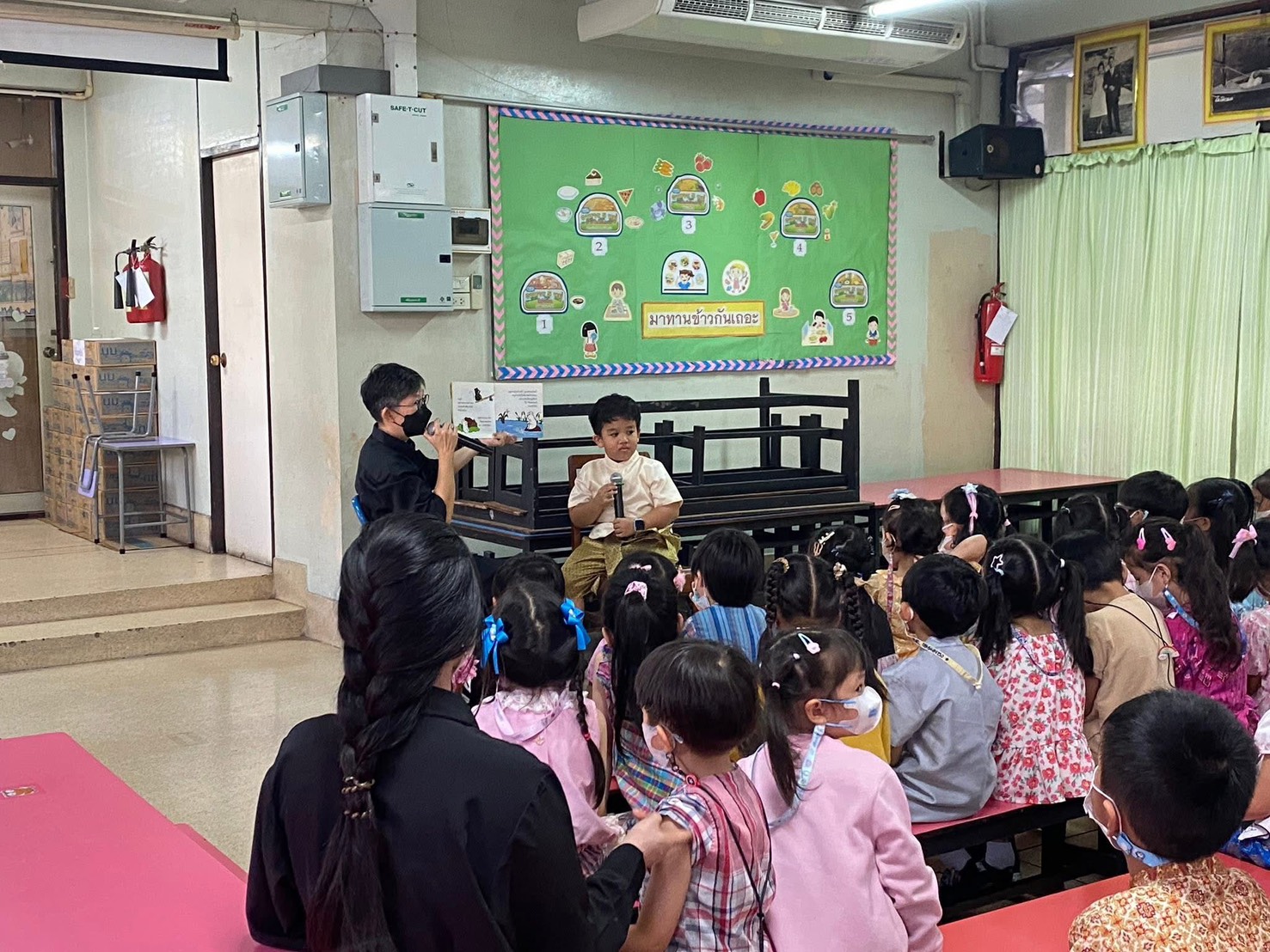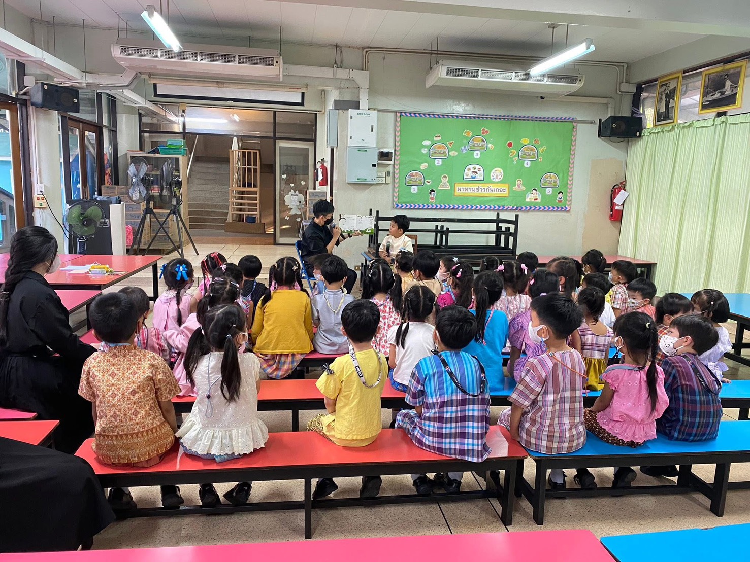 กิจกรรมนิทานวันศุกร์ โครงการส่งเสริมการอ่าน วันศุกร์ที่ 20 กุมภาพันธ์ 2569 น้องธันวา ชั้นอนุบาล 3/2 มาเล่านิทานเรื่อง “หนูดำกับหนูขาว“ให้เพื่อนๆ และน้องๆ ได้ฟังกันค่า กำลังแสดงหน้าที่ 1/1 1