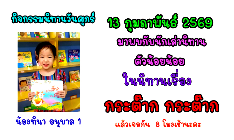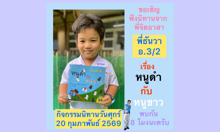 กิจกรรมนิทานวันศุกร์ โครงการส่งเสริมการอ่าน วันศุกร์ที่ 6 กุมภาพันธ์ 2569 น้องเกรฟ ชั้นอนุ... อ่านต่อ