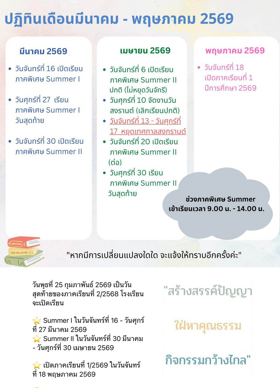 วันศุกร์ที่ 20 กุมภาพันธ์ 2569 พิธีมอบเกียรติบัตร “ผู้มีมารยาทงาม น้ำใจดี” ชั้นเตรียมอนุบา... อ่านต่อ