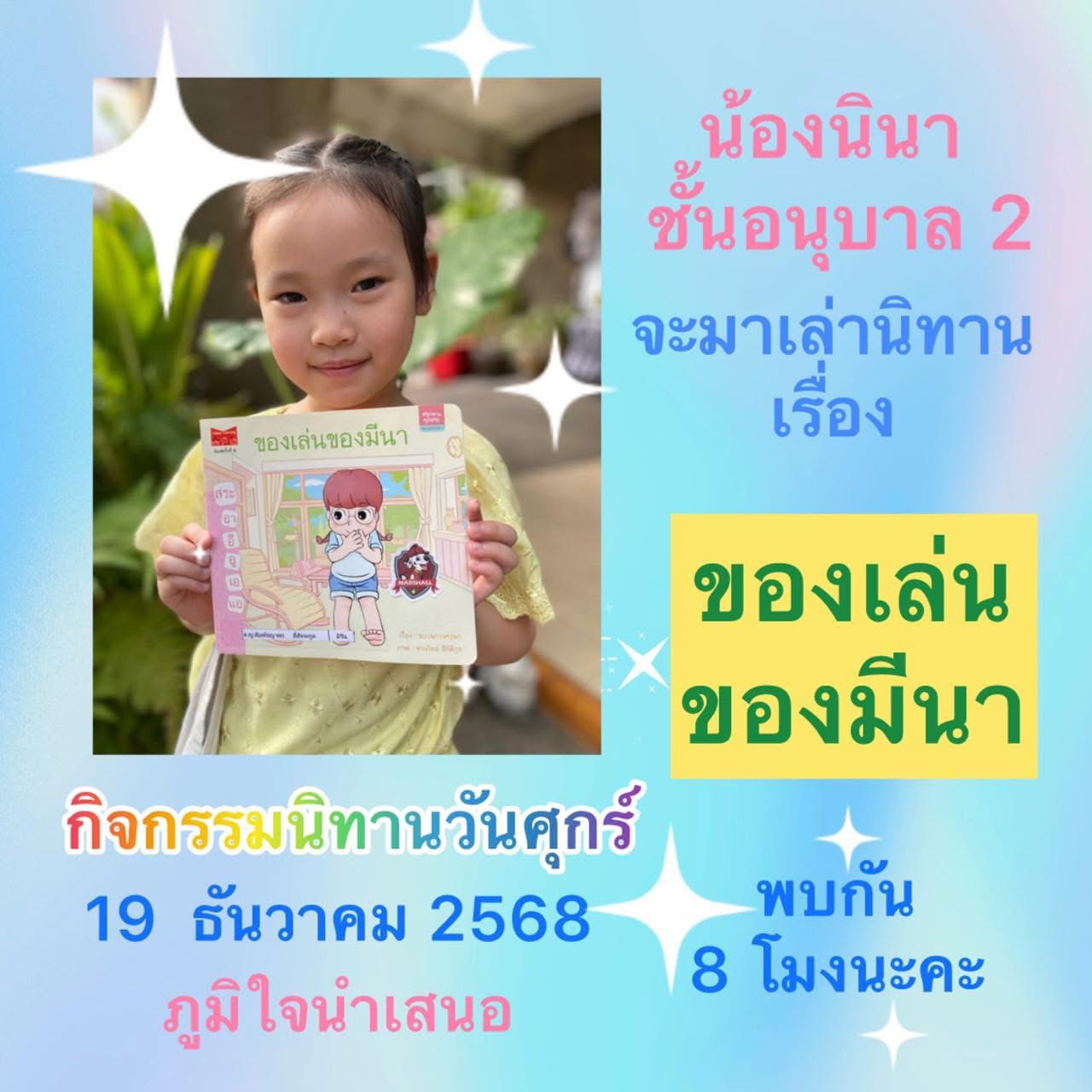 วันศุกร์ที่ 19 ธันวาคม 2568 เวลา 8.00 น. มาฟังนิทานสนุกๆ จากน้องนินากันนะคะ กำลังแสดงหน้าที่ 1/1 1