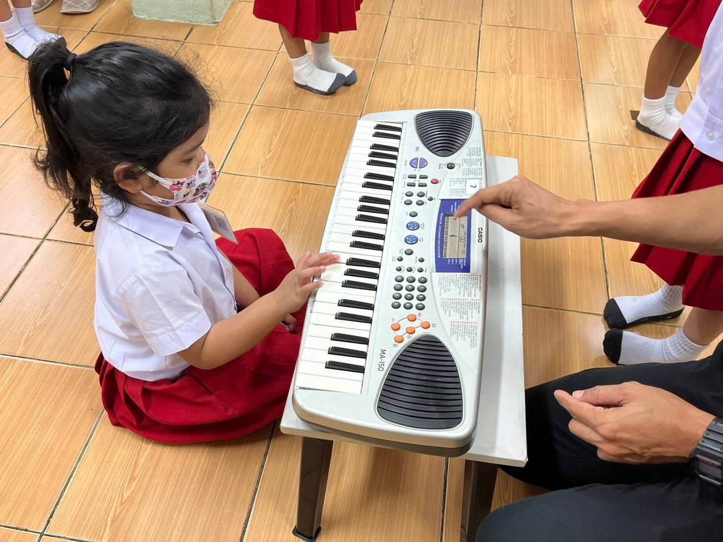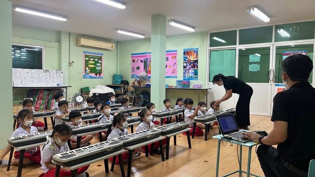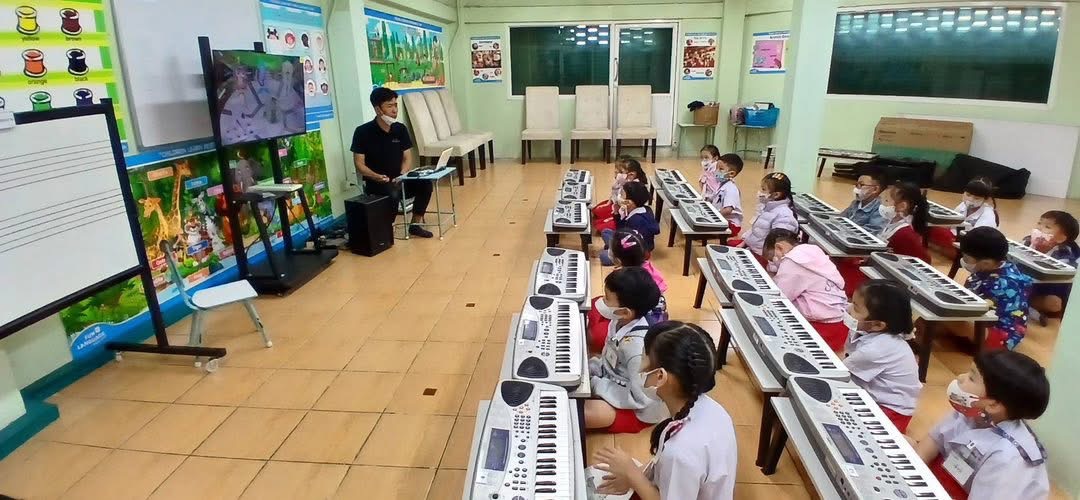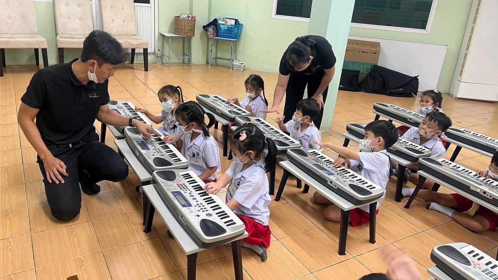 -ฝึกร้องเพลงแนะนำชื่อนิ้วมือทั้ง 5 และทดลองเล่นคีย์บอร์ด เพื่อนำไปสู่การเรียนในระดับต่อไป