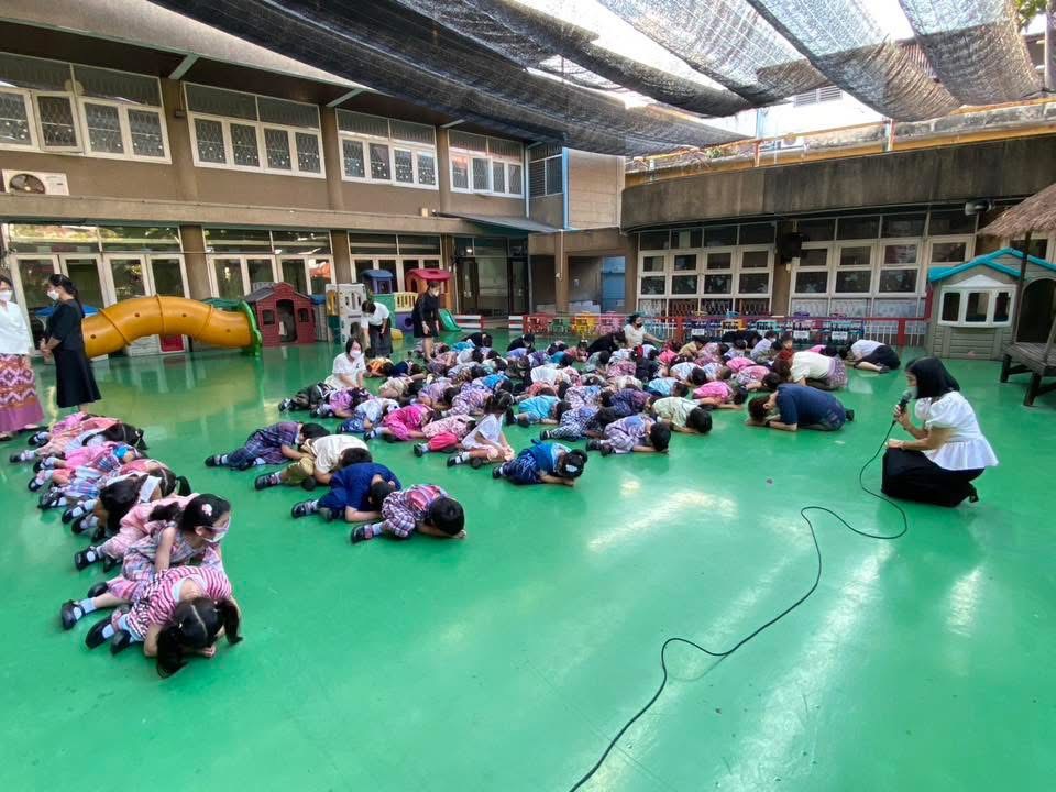 วันศุกร์ที่ 6 กุมภาพันธ์ 2569 กิจกรรมส่งเสริมมารยาทไทย เรื่องการเคารพธงชาติ การสวดมนต์ การถวายความเคารพ และการกราบ โดยโครงการรักษ์วัฒนธรรมไทย กำลังแสดงหน้าที่ 1/1 1