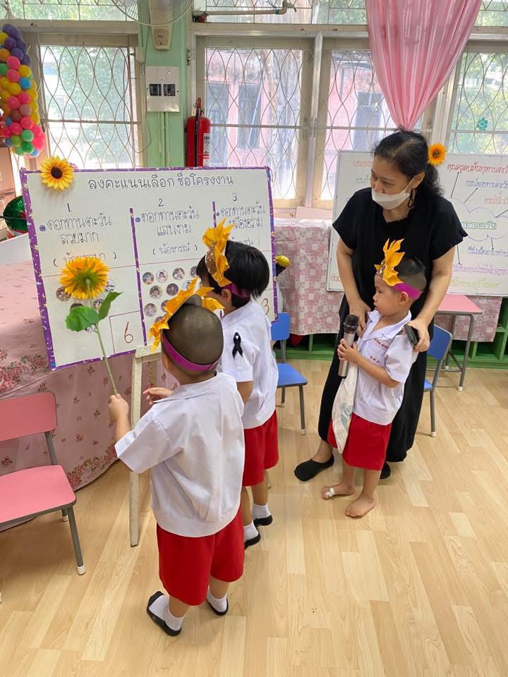 ของเด็กๆ ชั้นอนุบาล 1 เด็กๆ ได้เรียนรู้เกี่ยวกับดอกทานตะวันในด้านต่างๆ