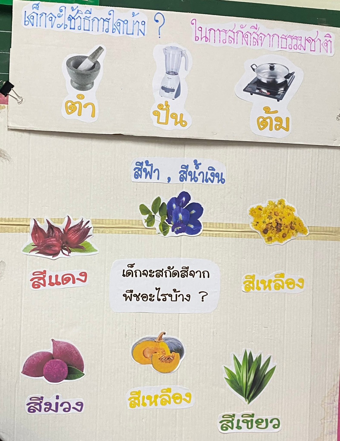 เช่น สีมาจากไหนบ้างในธรรมชาติรอบตัวเรา พืชหรือดอกไม้ต่างๆ สามารถสกัดสี ได้อย่างไร