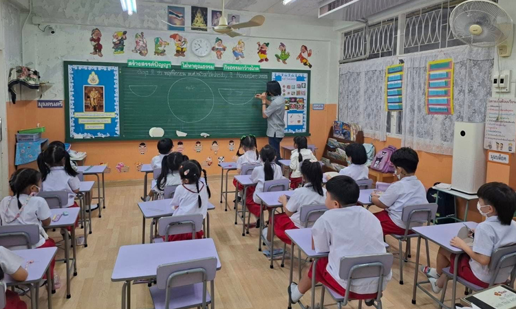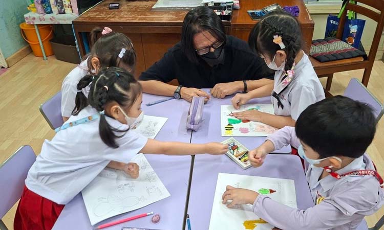 สร้างด้วยปูนและไม้ มีหินล้างเป็นบางส่วน เดิมประกอบด้วยห้องเรียน 4 ห้อง มีห้องสมุด 1 ห้อง ห้องนอนรวมใหญ่ 1 ห้อง และห้องเก็บของเล็ก 2 ห้อง มีโรงอาหารอยู่ใต้ห้องนอน...