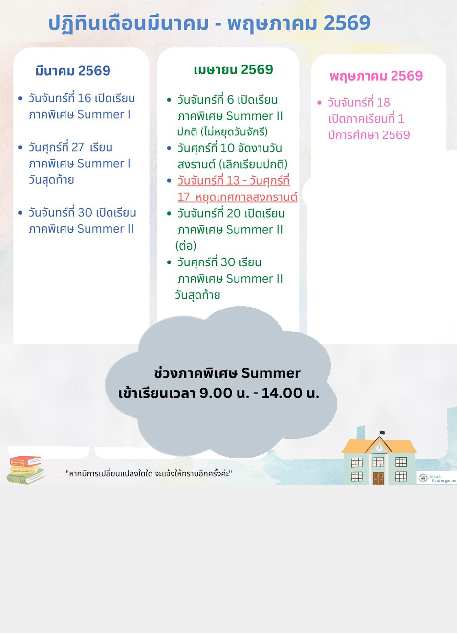 เปิดทำการสอนตั้งแต่ วันที่ 18 มีนาคม พ.ศ. 2527 คุณหญิงสนองนาฎ จารุดิลก เป็นครูใหญ่ นางวิภา อิทธิพงศ์ เป็นผู้จัดการ และนายวุฒิชัย นุตกุล เป็นผู้รับใบอนุญาต พื้นที่ในการจัดตั้งโรงเรียนอนุบาลจิดาภา มีเนื้อที่ 291 ตารางวา โดยจัดสร้างอาคาร 2 ชั้น 1 หลัง ตัวตึกเป็นอาคาร 2 ชั้น สีน้ำตาล