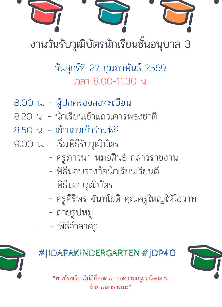 วันอังคารที่ 10 กุมภาพันธ์ 2569 นิทรรศการโครงงาน “ดอกทานตะวันแสนงาม” ของเด็กๆ ชั้นอนุบาล 1... อ่านต่อ