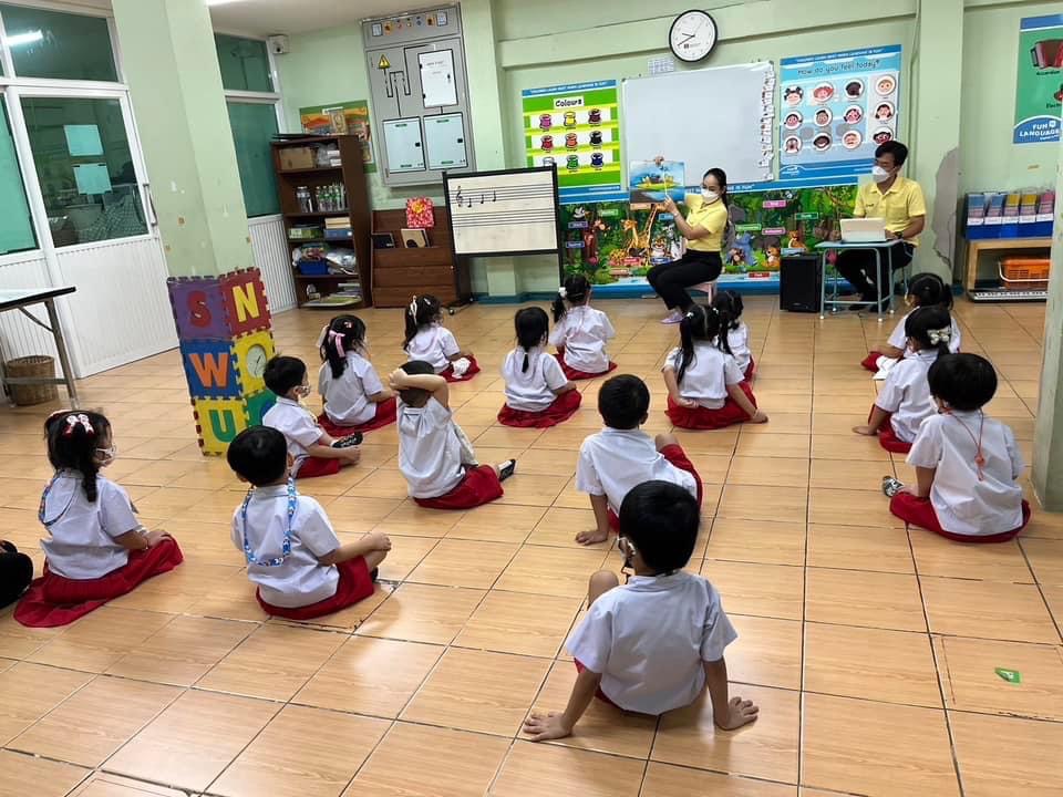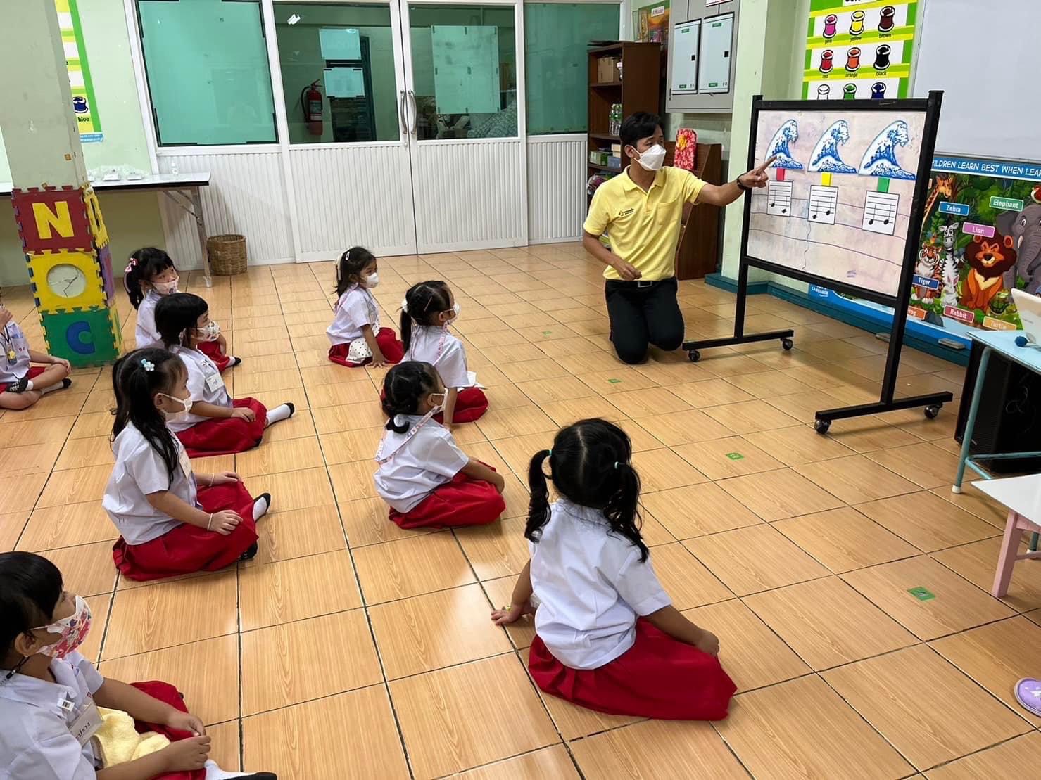 ภาพบรรยากาศการเรียนชั่วโมงดนตรีคีรีบูนอาทิตย์นี้ เด็กๆ ได้พัฒนาทักษะทางดนตรีและ สนุกสนานกับการเรียนที่สอนโดยครูโน้ตและครูเจี๊ยบมากค่ะ กำลังแสดงหน้าที่ 1/1 1