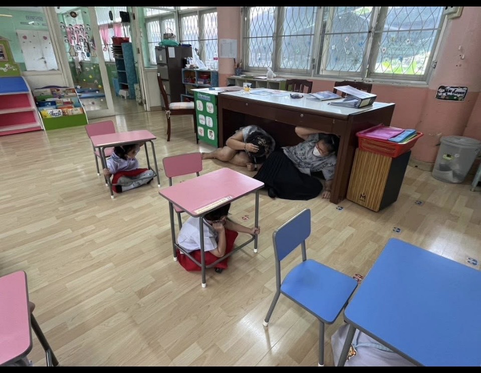 วันนี้เด็ก ๆ ได้ร่วมกิจกรรม ซ้อมเหตุแผ่นดินไหว กันอย่างพร้อมเพรียง เพื่อเรียนรู้วิธีปฏิบัติตนอย่างถูกต้องและปลอดภัย หากเกิดเหตุการณ์จริง ขอขอบคุณผู้บริหาร คุณครู บุคลากร และน้อง ๆ ทุกคน ที่ให้ความร่วมมืออย่างดี ทำให้การซ้อมครั้งนี้สำเร็จลุล่วงไปด้วยความเรียบร้อย