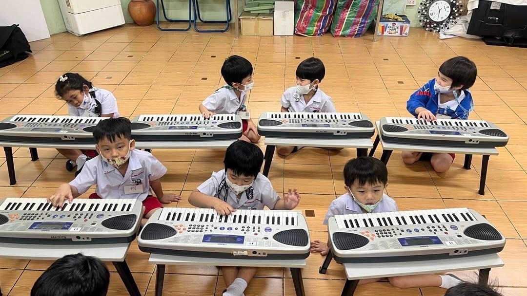-ฝึกร้องเพลงแนะนำชื่อนิ้วมือทั้ง 5 และทดลองเล่นคีย์บอร์ด เพื่อนำไปสู่การเรียนในระดับต่อไป
