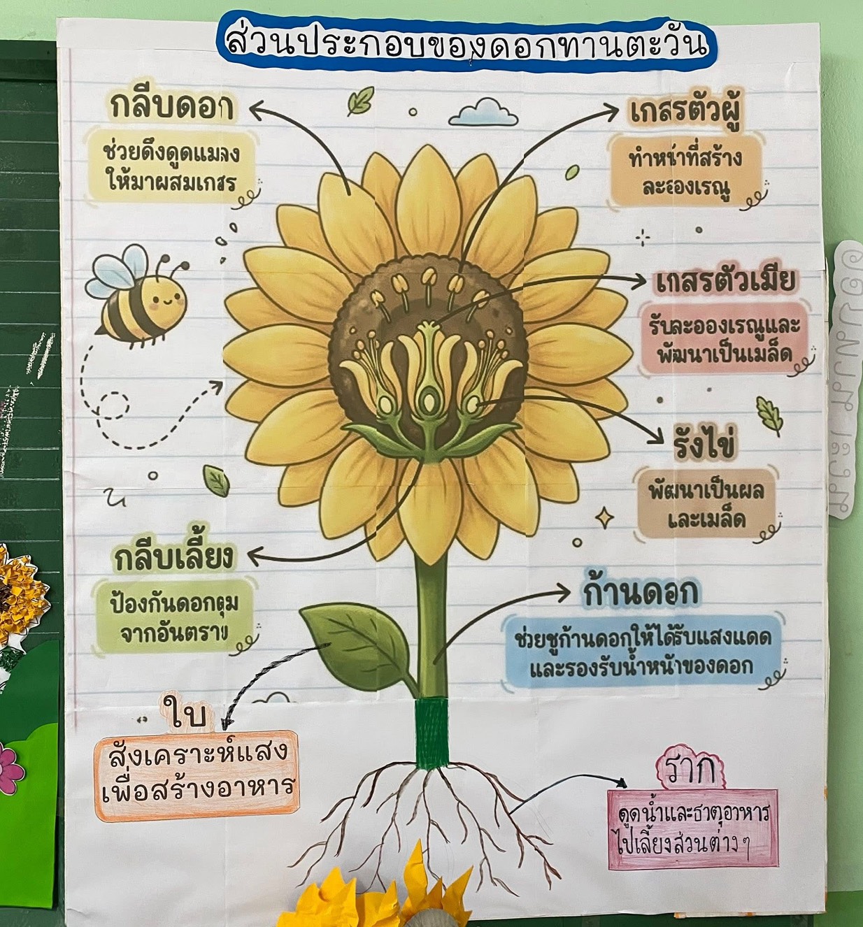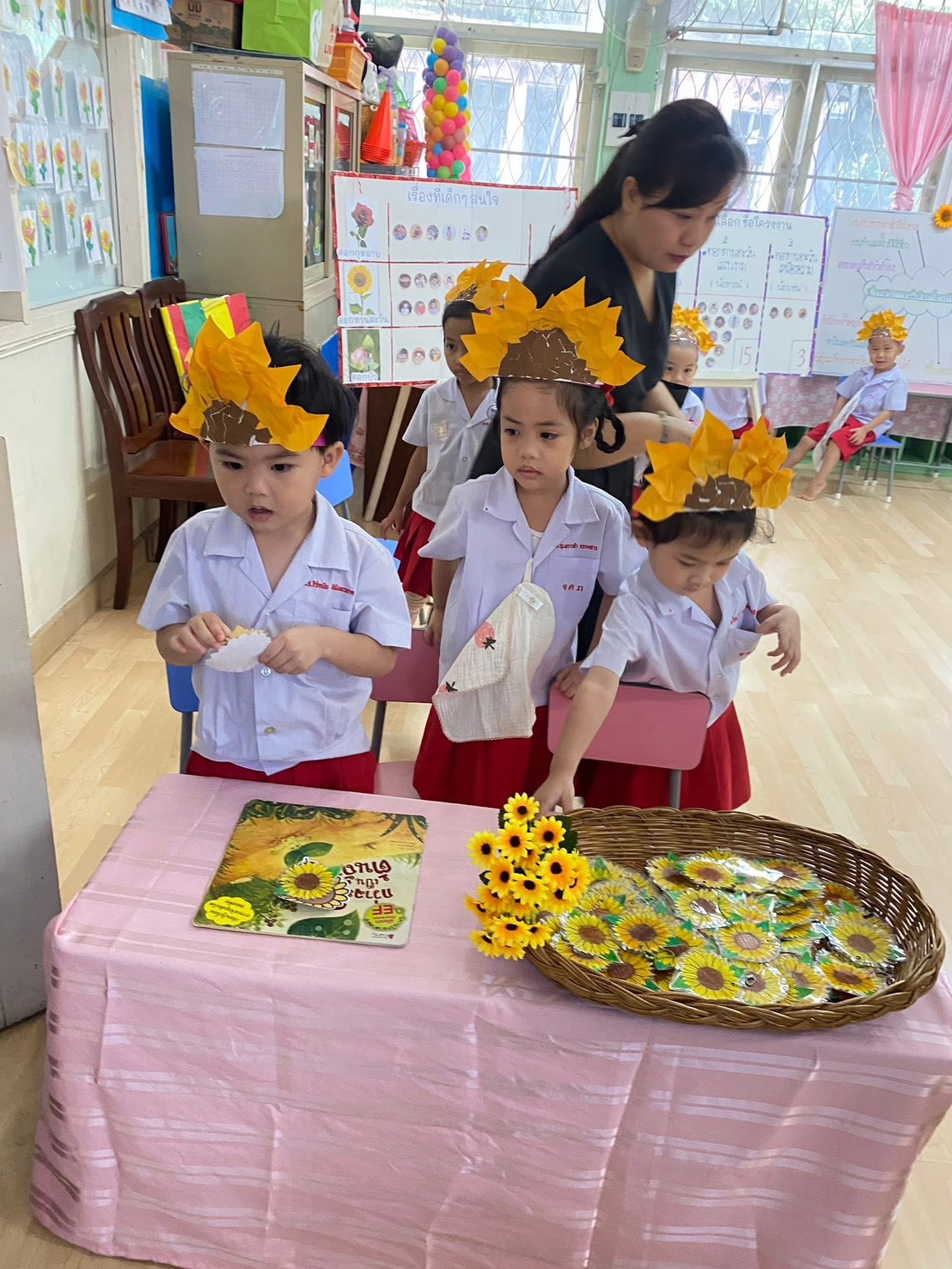 ของเด็กๆ ชั้นอนุบาล 1 เด็กๆ ได้เรียนรู้เกี่ยวกับดอกทานตะวันในด้านต่างๆ