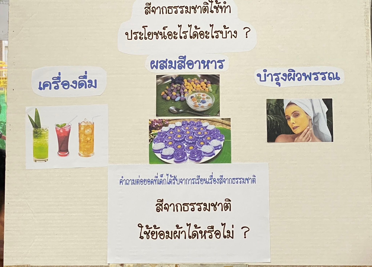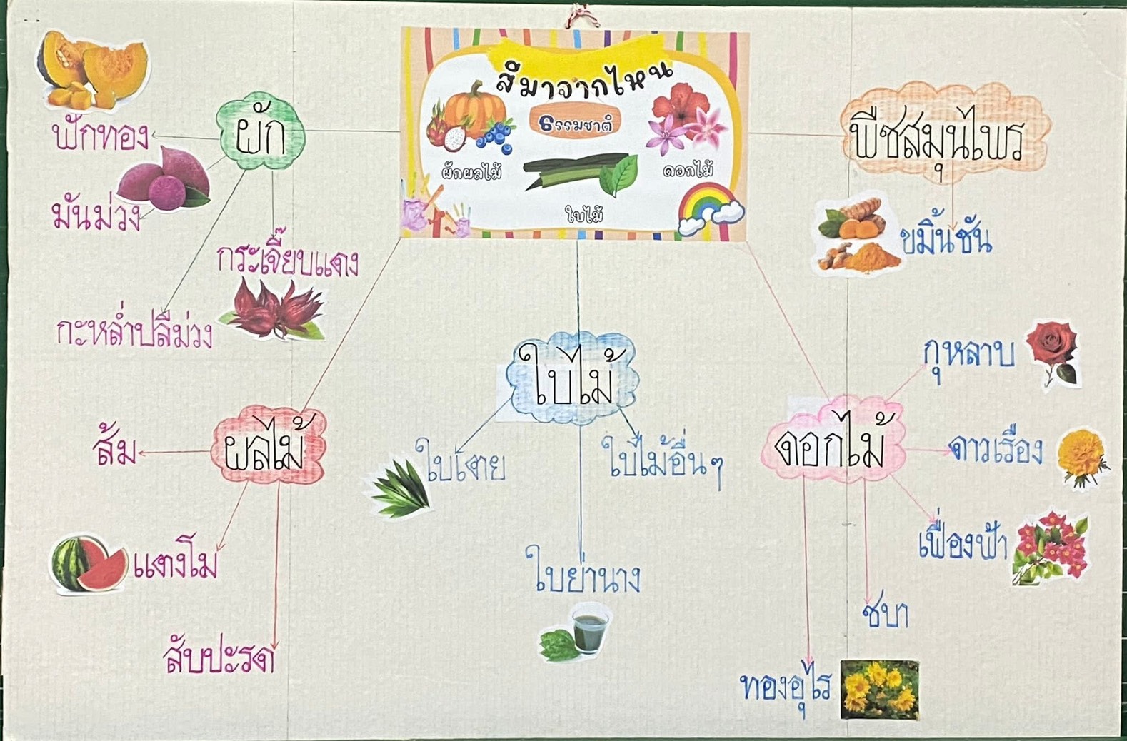 เรื่อง สีจากธรรมชาติ ของเด็กๆ ชั้นอนุบาล 3/2 เด็กๆ ได้เรียนรู้เกี่ยวกับสีจากธรรมชาติในแง่มุมต่างๆ